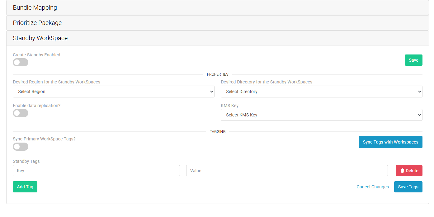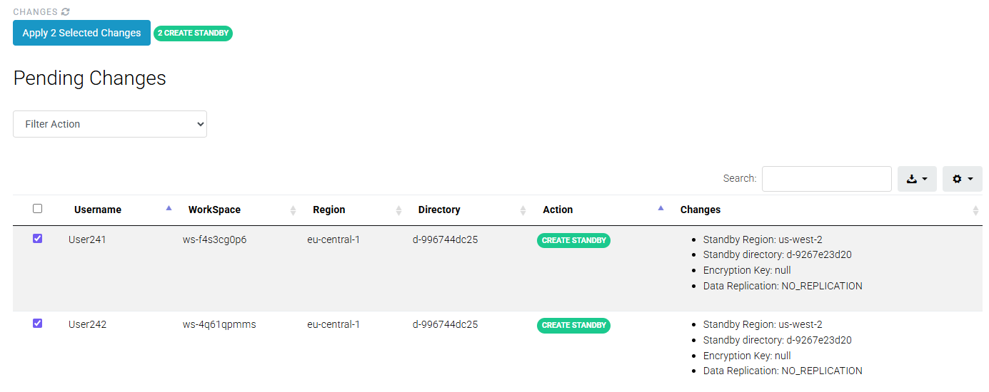 When enabled "Create Standby" changes will appear in the pending changes page for user WorkSpaces that are attached to packages with the "Create Standby Enabled" toggled on