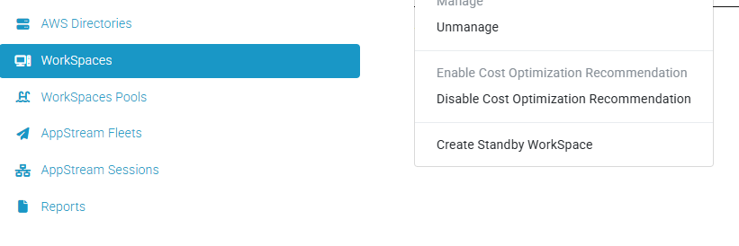 - The Standby WorkSpaces feature can be enabled in the WorkSpaces Setting page